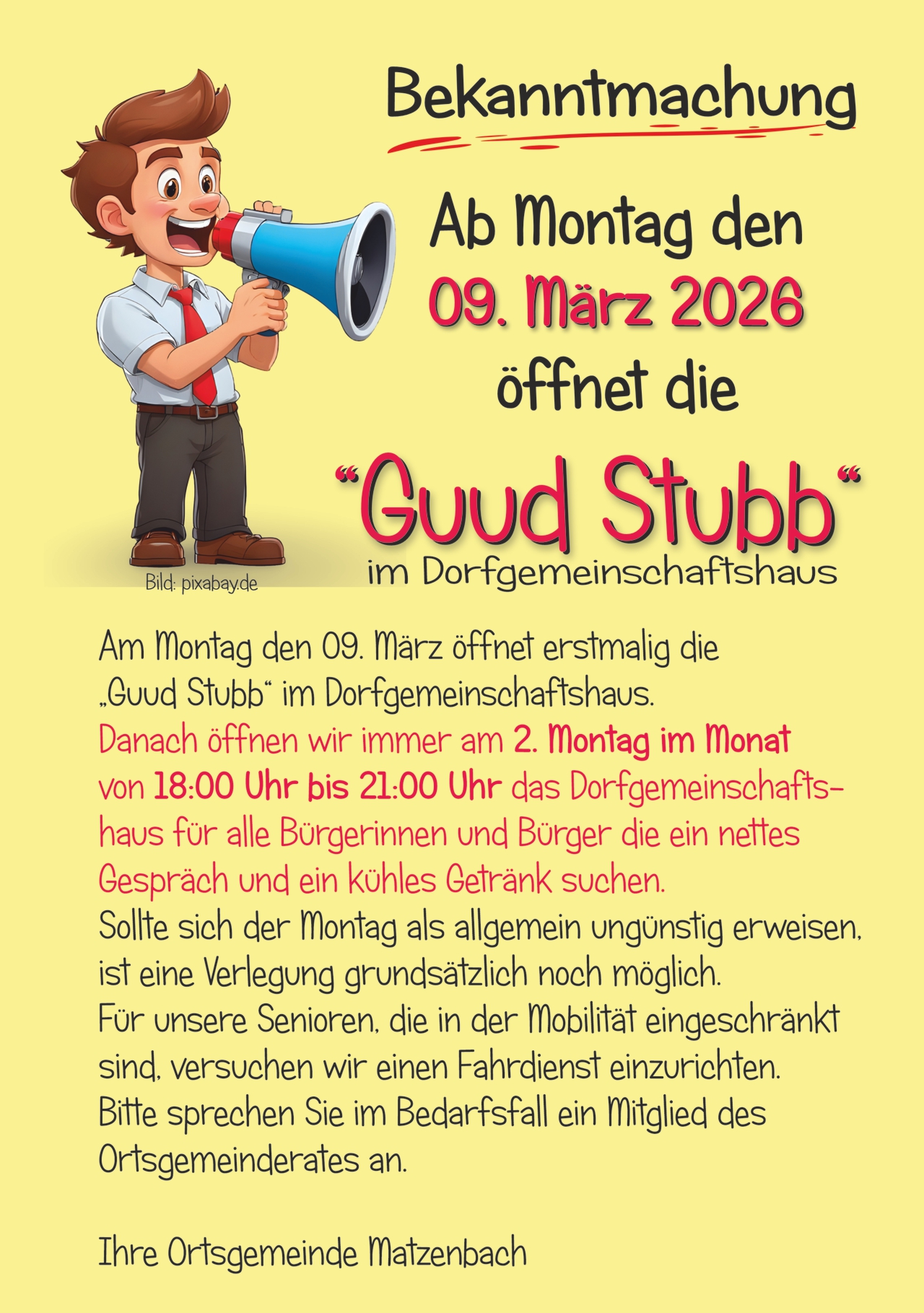 der Gemeinde Matzenbach, vertreten durch den Ortsbürgermeister Andreas Willig.