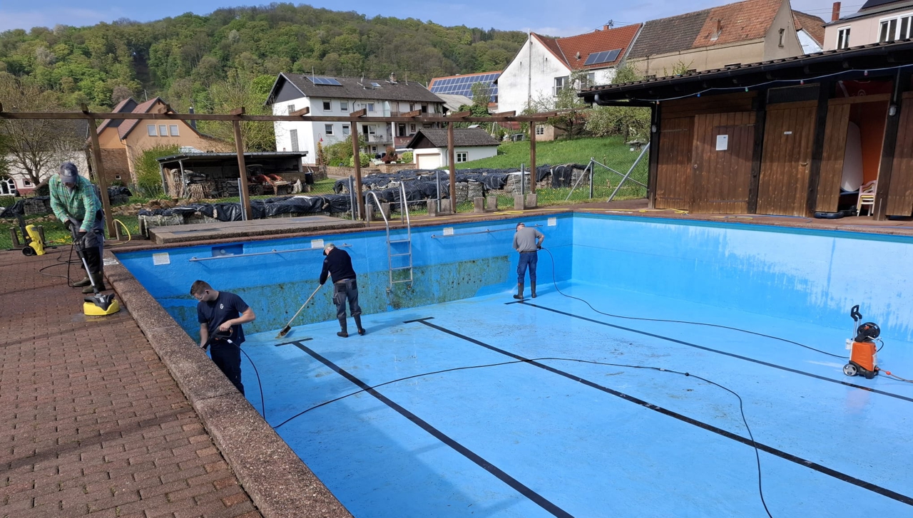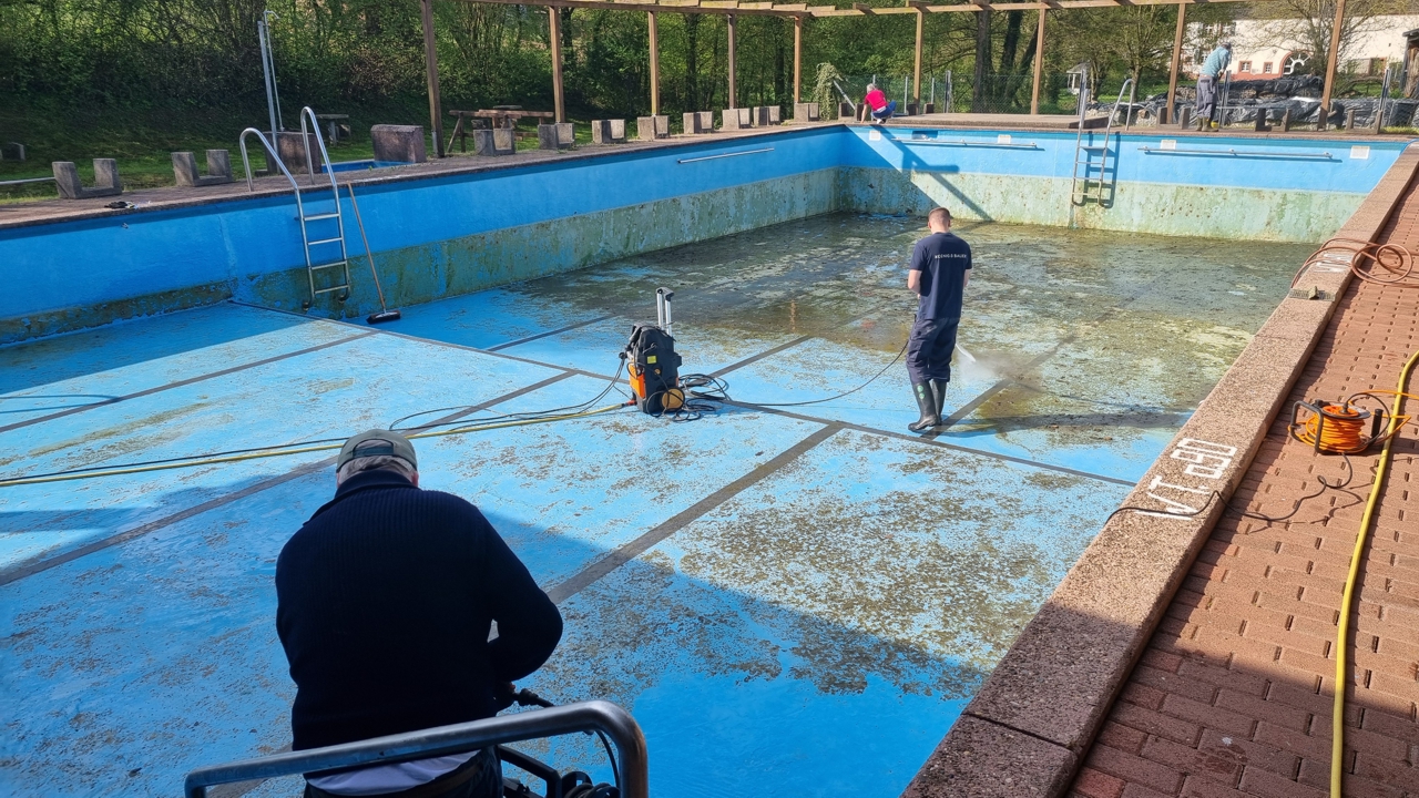2026 - Reinigung des Solarfreibades Am Samstag den 18.04. fand die Grobreinigung des Solarfreibades statt. ![]() Nach dem Ablassen des Wassers sah das Becken schon extrem verschmutzt aus. ![]() Über Winter sammelt sich da schon einiges an Schmutz und Getier (wurde natürlich wieder ausgesetzt) an. ![]() Mit drei Hochdruckreinigern wurde dann die Beckenumrandung ... ![]() ... die Wände und der Boden gründlich gereinigt. ![]() Nach gut drei Stunden sah das Becken schon richtig gut aus ... ![]() ... und eine halbe Stunde später war alles sauber. ![]() Nach getaner Arbeit gab es noch ein leckeres Mittagessen (besten Dank an die Köchin Sonja, die das leckere Essen zubereitet hatte) für alle. Hier im Bild nur ein Teil der HelferInnen. ![]() Nach diesem tollen Essen wurde als Zugabe auch noch das Mühlefeld gereinigt. ![]() So sieht es schon deutlich besser aus. Wenn die Markierungen im Becken angebracht werden wird auch hier nochmals nachgestrichen. Leider konnten wir kein HelferInnen-Foto aufnehmen, trotzdem besten Dank an Andreas, Herbert, Isolde, Jürgen, Kurt, Lukas, Matthias, Sigi und Sonja.