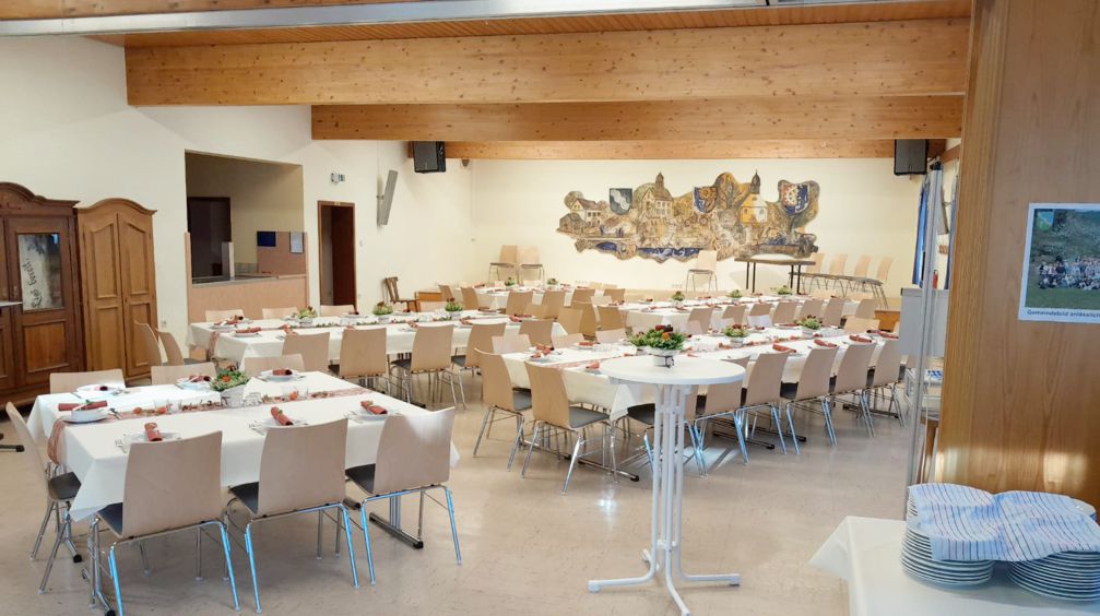 + großer Saal mit ca. 120 Plätzen, Theke mit Zapfanlage