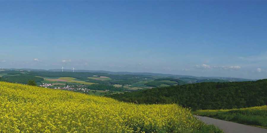Blick über Matzenbach - im Hintergrund der Remigiusberg mit der Michelsburg