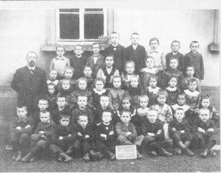 Wer waren nun die ersten Kinder die ihre Schritte zur neuen Schule lenkten? Die Ur- und Ur-Urgroßeltern der heutigen Generation zumeist. Dieselben Namen, die heute noch die Rubriken der Schulregistratur füllen, finden sich auch im Zensurbuche, das mein Vorgänger vor 100 Jahren anlegte, junge Burschen und Mädchen der Familien Rübel, Stemler, Moog, Künstler, Aulenbacher, Botz, Daubermann, Braun u.a.m. trotteten damals, so wie auch heute noch beim Klange des Glöckleins mit Tafel und Buch zur Schule. Nur wenige neue Namen fanden Eingang in die Bücher (Börtzler, Leyser, Hamm), viele alte aber sind erloschen oder in neue verschmolzen. Die Natter, Kreutz, Ludwig, Grub, Geminn, Berwanger, Huff u.a. sind heute unserem Dörflein fremd. Auswanderungen über das große Wasser, Ausheiratungen und Gevatter Tod änderten die Listen von Jahr zu Jahr. Doch immer nicht in demmaße als die Ortschaften, welche im Zeichen der Industrie stehen. Der Grund und Boden der Landwirtchaft verbietet große Veränderungen in der Bevölkerung, gestattet nicht viel Zuzug und Abwanderung und so ist heute beinahe jedes Gimsbacher Kind in der glücklichen Lage, sein naseweises Näschen in die Zensuren der Ur-Urgroßeltern zu stecken. Auch die Zahl der Schüler war nur geringen Schwankungen unterworfen. Während Arbeiterdörfer sich in den letzten Jahrzehnten vor dem Kriege geradezu zusehends vergrößerten, blieb sich die Bevölkerungsziffer unseres Dörfleins fast gleich. Die Schülerzahl der Volkshauptschule betrug im Jahre 1844 sogar 44, also 16 mehr als heute.