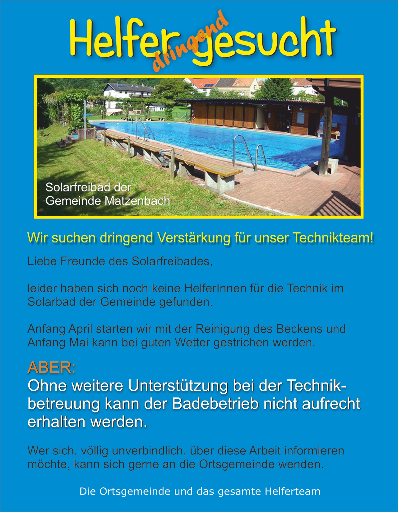 Die Betreuung der Homepage Matzenbach erfolgt ausschließlich ehrenamtlich ! Für die technische Gestaltung der Webseiten sind folgende Personen zuständig. (alphabetische Reihenfolge)